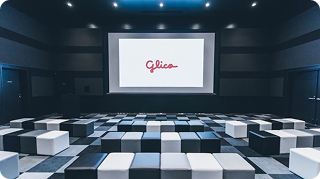 大画面200インチに映し出される映像をゆっくりとご覧ください。創業者の歴史が分かる映像「創意工夫 〜創業者 江崎利一物語〜」と、アイスクリームに詳しくなれる映像「アイスクリームができるまで」を上映します。