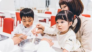 アイスクリームの手作り体験ができます。材料をゆっくりとかき混ぜながら冷やし固めることで楽しみながらアイス作りの工程を学ぶことができるコーナーです。