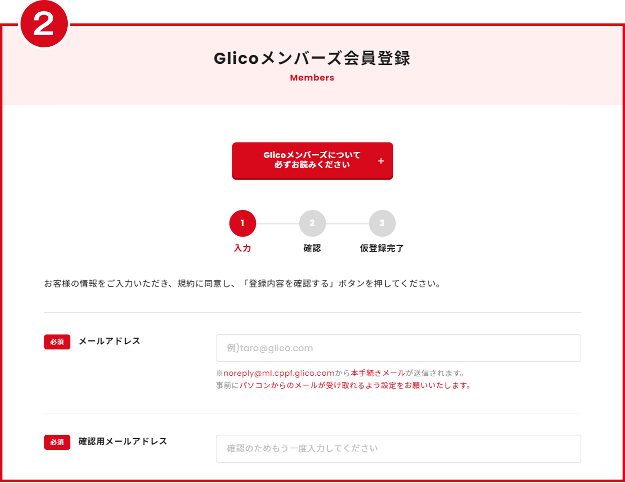 Glicoメンバーズ会員登録ページにて、必要情報を入力します。