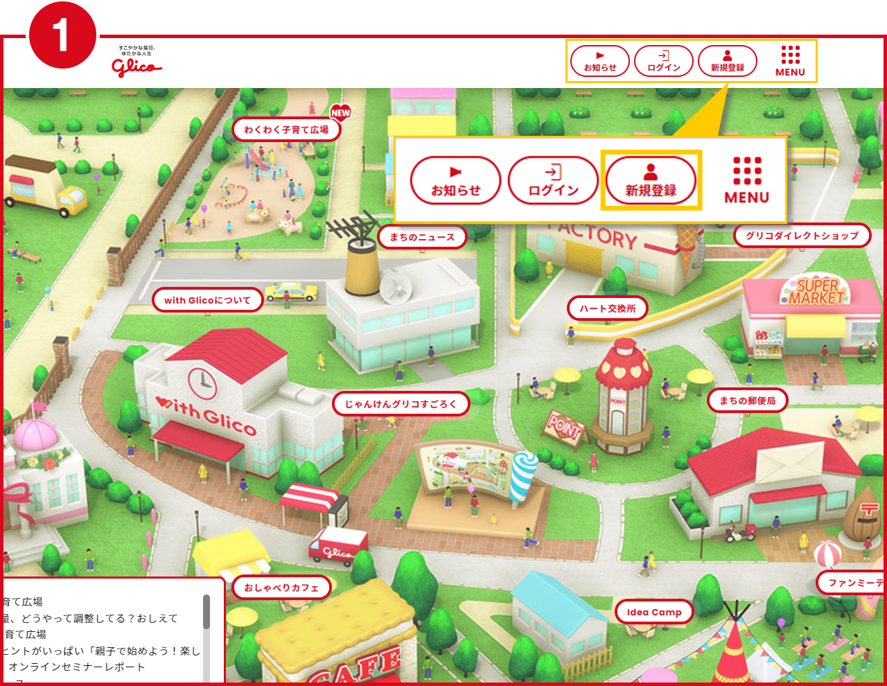 会員登録がお済でない方は、こちらより withGlicoに遷移後、ページ上部の「新規登録」ボタンより新規会員登録を行ってください。