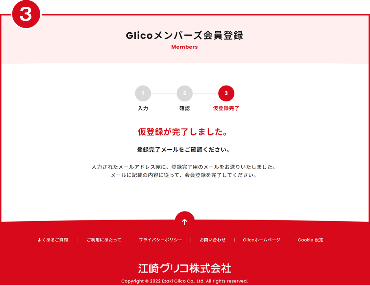 仮登録が完了。登録用メールが送信されます。ご確認ください。